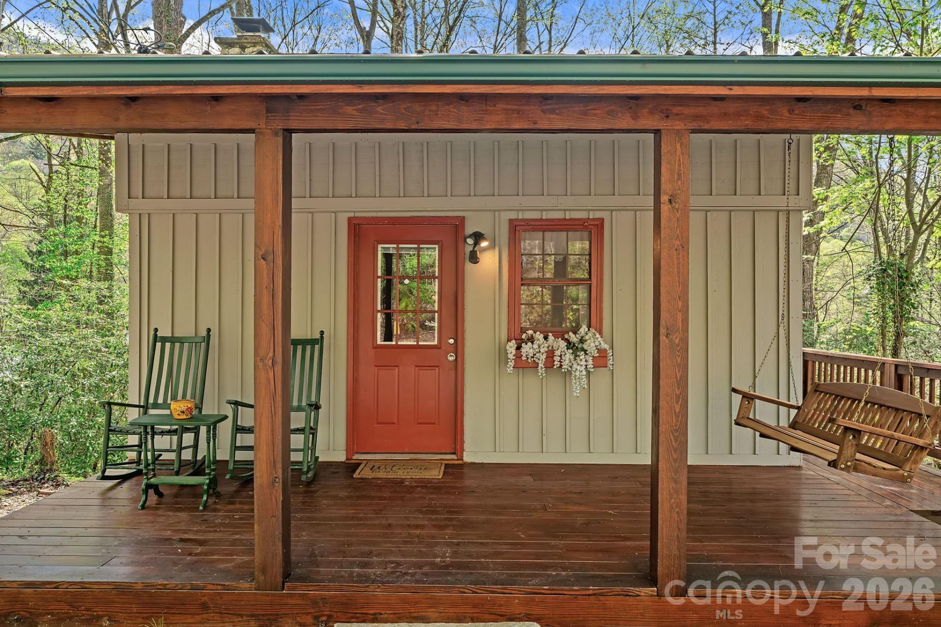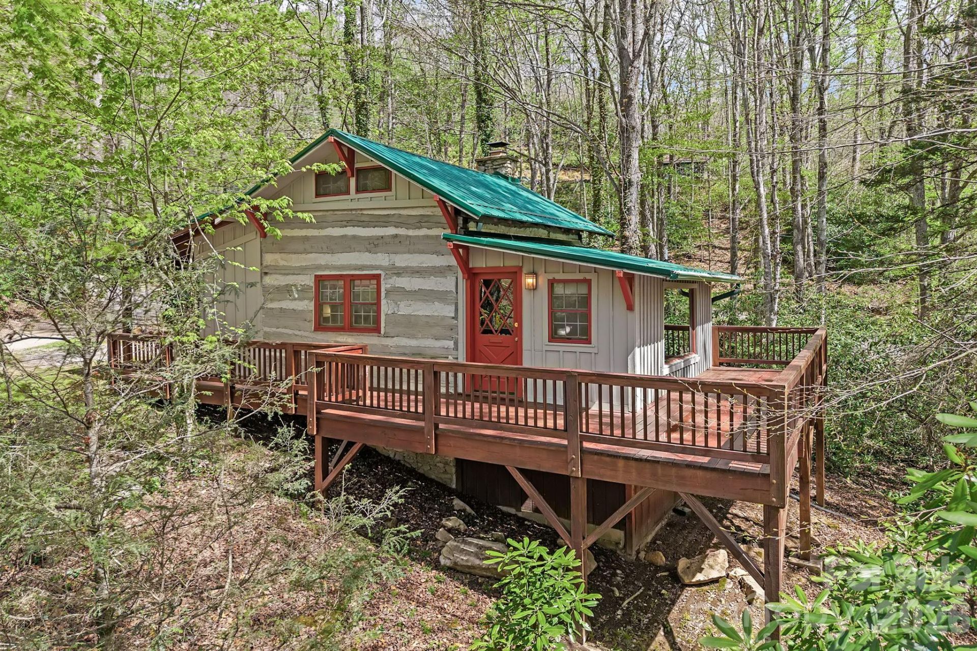 There's a certain feeling you're meant to find in the mountains, and this authentic rustic cabin offers just that?a rare connection to the history and craftsmanship of Western North Carolina. Built using logs sourced from the Cataloochee area, the home showcases true hand-crafted construction, with visible evidence of hand-chopped logs that speak to a level of artistry and authenticity that is nearly impossible to replicate today.The setting feels quiet and removed, surrounded by nature and positioned to take in seasonal mountain views. A welcoming covered front porch, complete with rocking chairs and a porch swing, invites slow mornings and relaxed evenings, while the wraparound deck extends the living space outdoors, offering multiple vantage points to enjoy the natural surroundings.Inside, the cabin tells a story. Exposed log walls, warm wood tones, and original textures create a sense of depth and character throughout. The main living space is anchored by a stone fireplace, offering a cozy and inviting focal point, while vaulted ceilings add volume and light without losing the intimate feel that defines a true mountain cabin.The kitchen and dining area blend seamlessly into the living space, with a massive window that draws in natural light and frames the surrounding landscape. A lofted sleeping area adds both charm and functionality, creating a private retreat overlooking the main living space below.Rich in history, the cabin once served as a honeymoon cottage for newlyweds, a nod to the name Honeymoon Lane. Today, it offers that same sense of escape and simplicity, with the added convenience of paved access and close proximity to Maggie Valley's amenities, including Cataloochee Ski Area, Harrah's Cherokee Casino, and the Blue Ridge Parkway, as well as a short drive to Downtown Waynesville.Offered furnished, including select furniture, décor, and kitchen essentials, the home is ready to be enjoyed from day one, whether as a personal retreat, full-time residence, or mountain getaway to share.